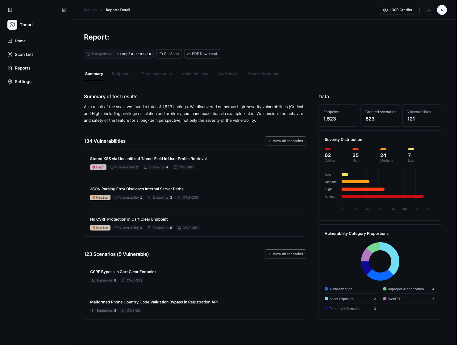 Xint automatically generates 30–50 advanced attack scenarios per URL, replicating the multi-step attack paths a human pentester would craft manually.